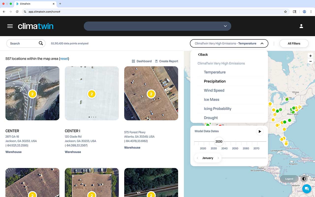 ClimaTwinの先進的なClimate Risk Intelligence ™ソリューションは、AIを活用した気候ビジネスインテリジェンスプラットフォームであり、インフラの所有者、オペレータ、エンジニア、投資家、コンサルタント、保険会社、官民パートナーシップなどが異常気象や長期的な気候変動によるリスクを評価および報告するのに役立ちます。ClimaTwinは、洞察を財務実績、リスク管理、コンプライアンス義務に直接リンクすることで、世界中の組織がレジリエンスを計画し、積極的に適応し、競争上の優位性を獲得できるようにします。